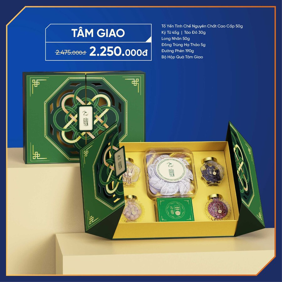 Combo tặng yến sào Cung Đình từ Bửu Yến với thiết kế hộp đơn giản những đầy tinh tế, sang trọng. Combo thể hiện tình cảm chân thành và ý nghĩa, lời chúc sức khoẻ dồi dào, an lành đến người nhận.