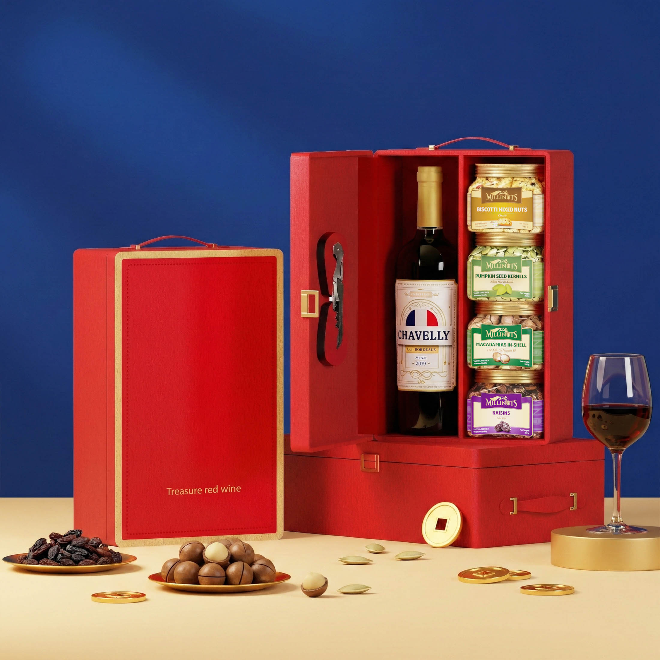 - Rượu Vang Chavelly Merlot (750ml): Dòng vang Pháp với sắc đỏ Ruby quyến rũ, hương vị mượt mà của trái cây chín, tannin êm dịu dễ uống, là chất dẫn nồng nàn để kết nối những tâm giao ngày đầu năm.