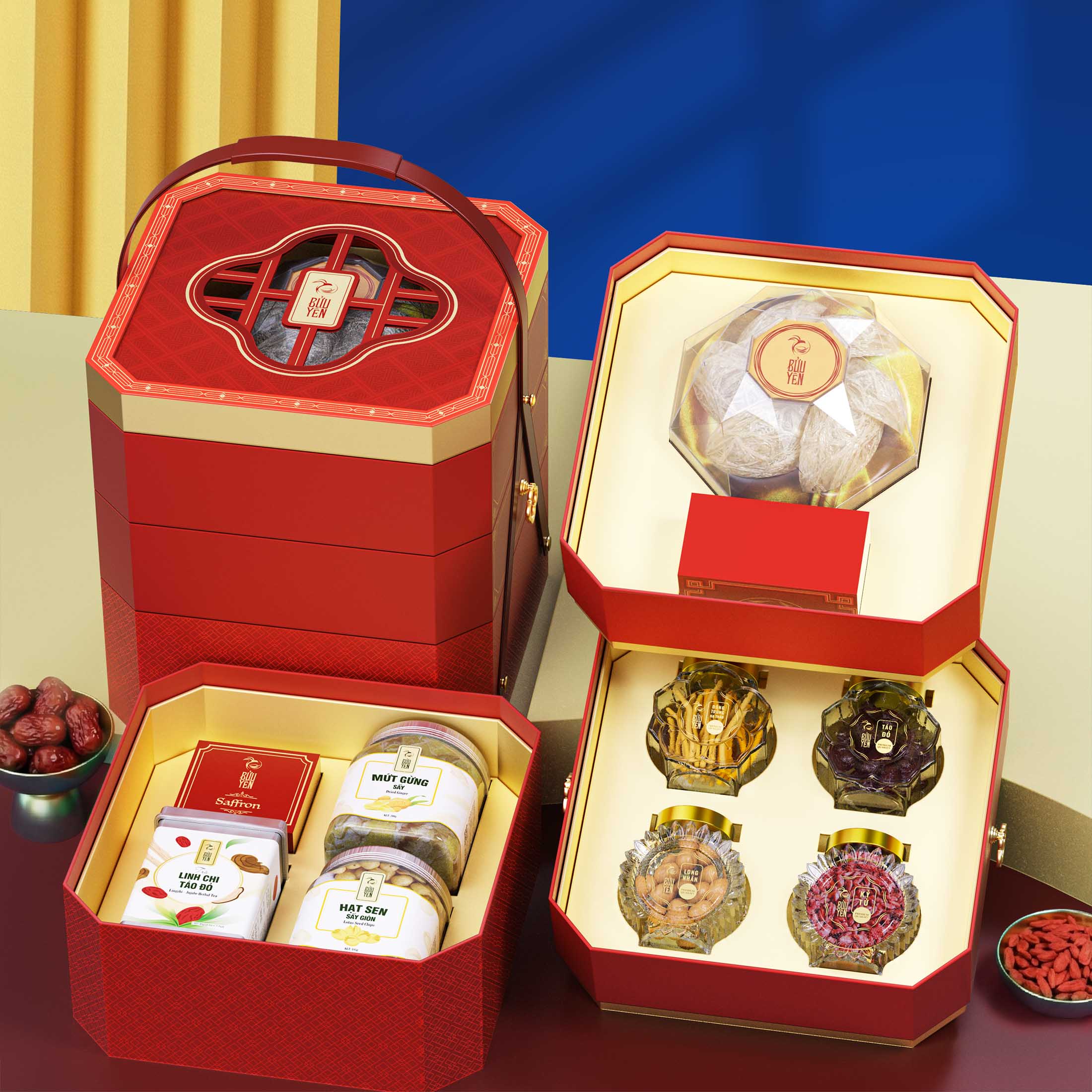 - Thiết kế hộp 3 tầng độc bản, sang trọng, đóng gói kỹ lưỡng, phù hợp mọi dịp biếu tặng.