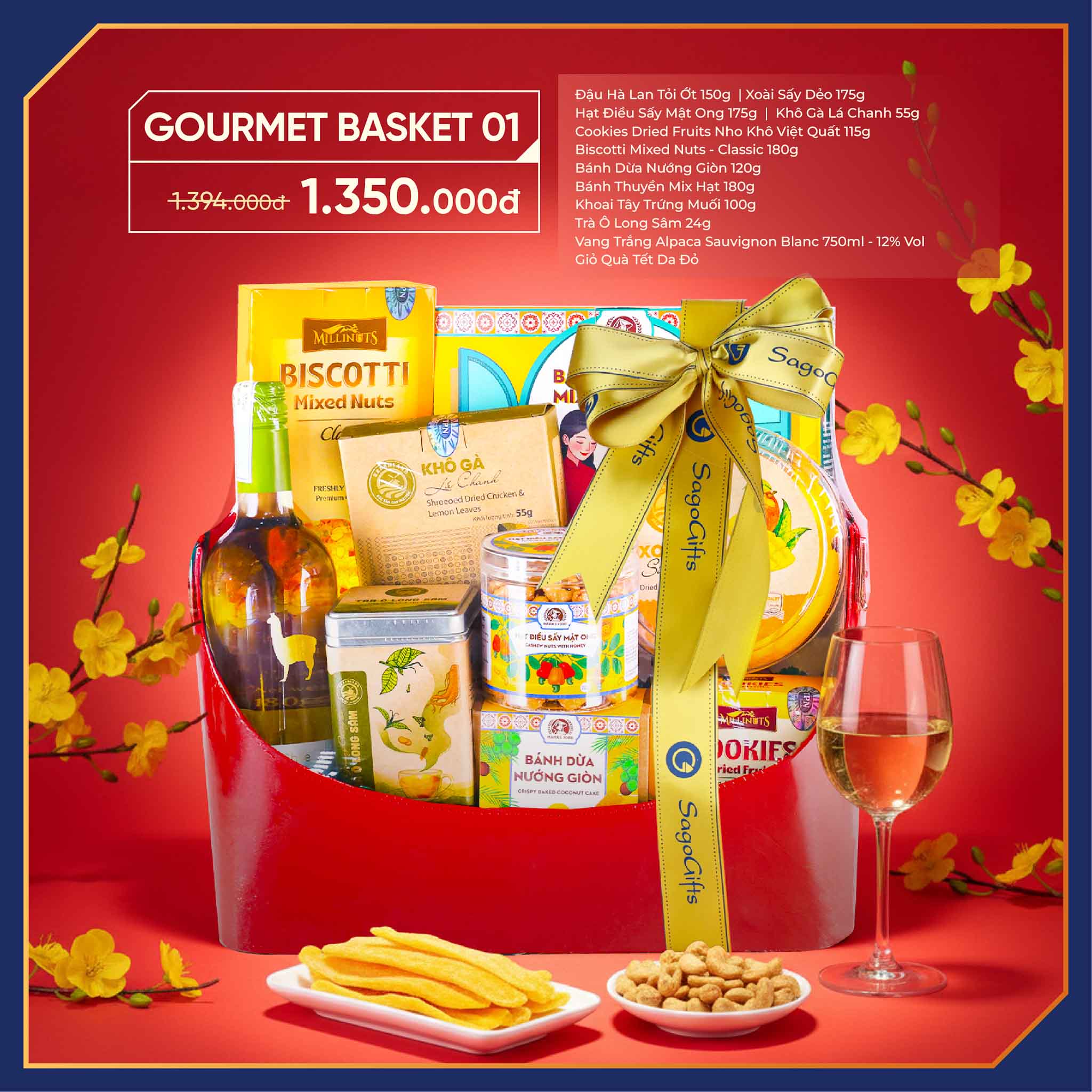 Dù là quà Tết dành cho gia đình, quà tri ân khách hàng hay quà tặng đối tác, Gourmet Basket 01 đều truyền tải thông điệp tích cực về sự gắn kết, lời chúc tốt lành và mong muốn đồng hành bền lâu.