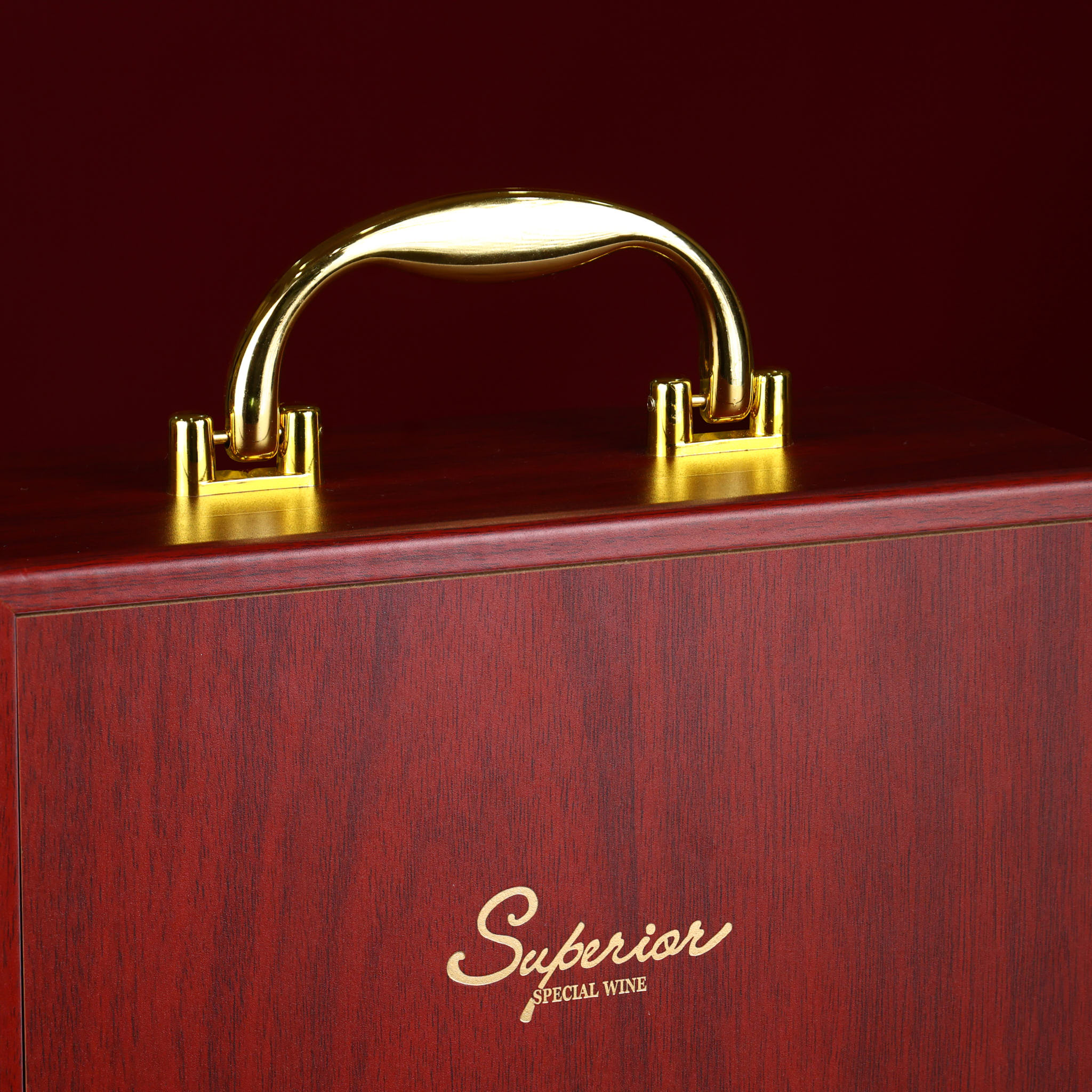 Tất cả vật phẩm được sắp xếp gọn gàng trong hộp gỗ Superior – Vân Nâu cao cấp. Chất liệu gỗ với vân nâu trầm ấm, tự nhiên mang lại vẻ đẹp cổ điển, sang trọng và bền vững theo thời gian, thể hiện sự trân quý sâu sắc đối với người nhận.