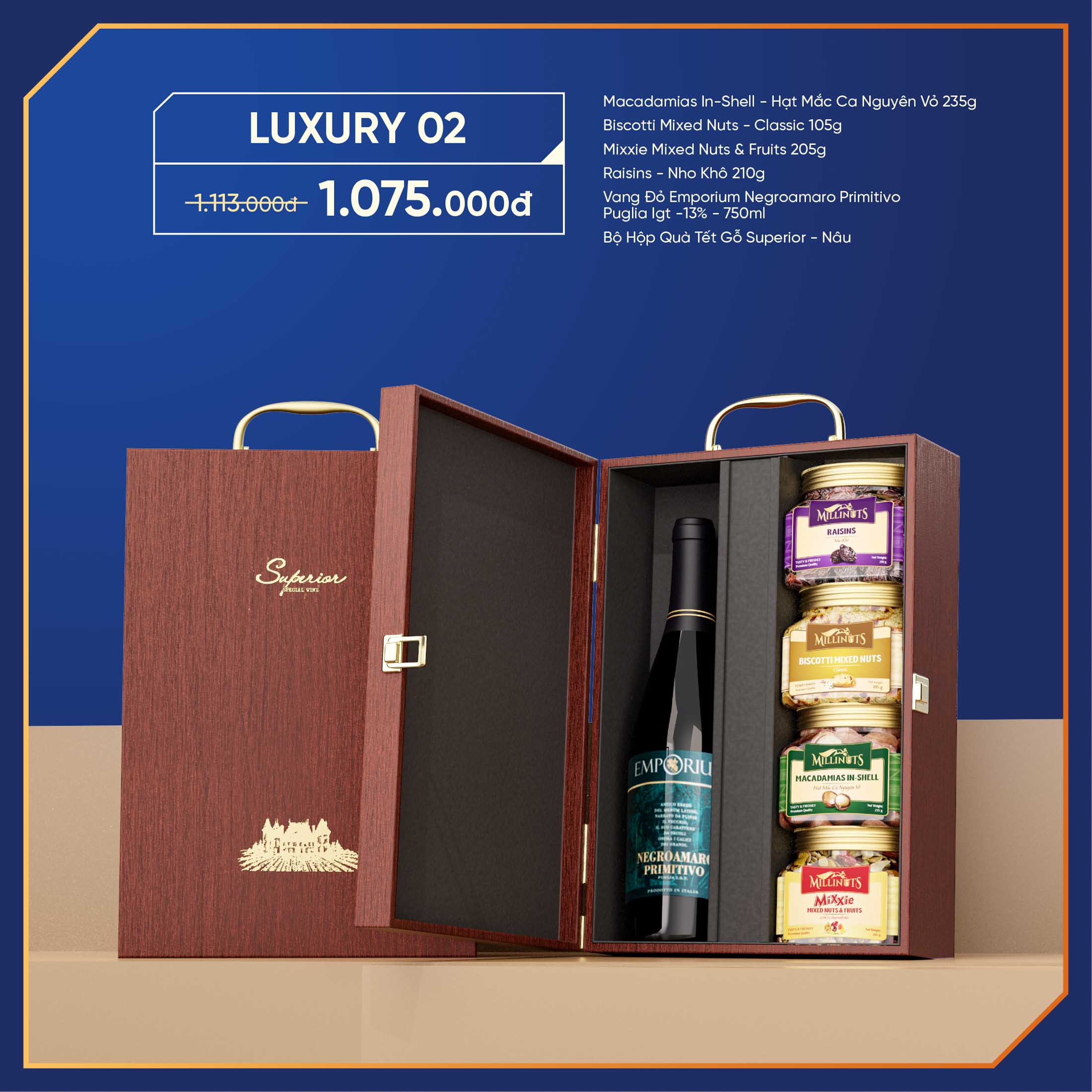 • Bộ Hộp Quà Tết Gỗ Superior – Nâu
