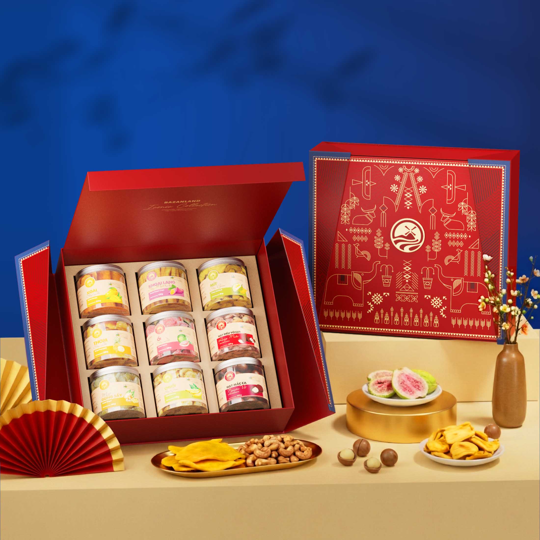 Tất cả được sắp xếp chỉn chu trong hộp quà Tết Iconic Size L – màu đỏ, kích thước lớn tạo cảm giác bề thế, trang trọng. Sắc đỏ thắm bao phủ hộp quà như lời chúc may mắn, hưng thịnh và năng lượng tích cực lan tỏa trong năm mới.