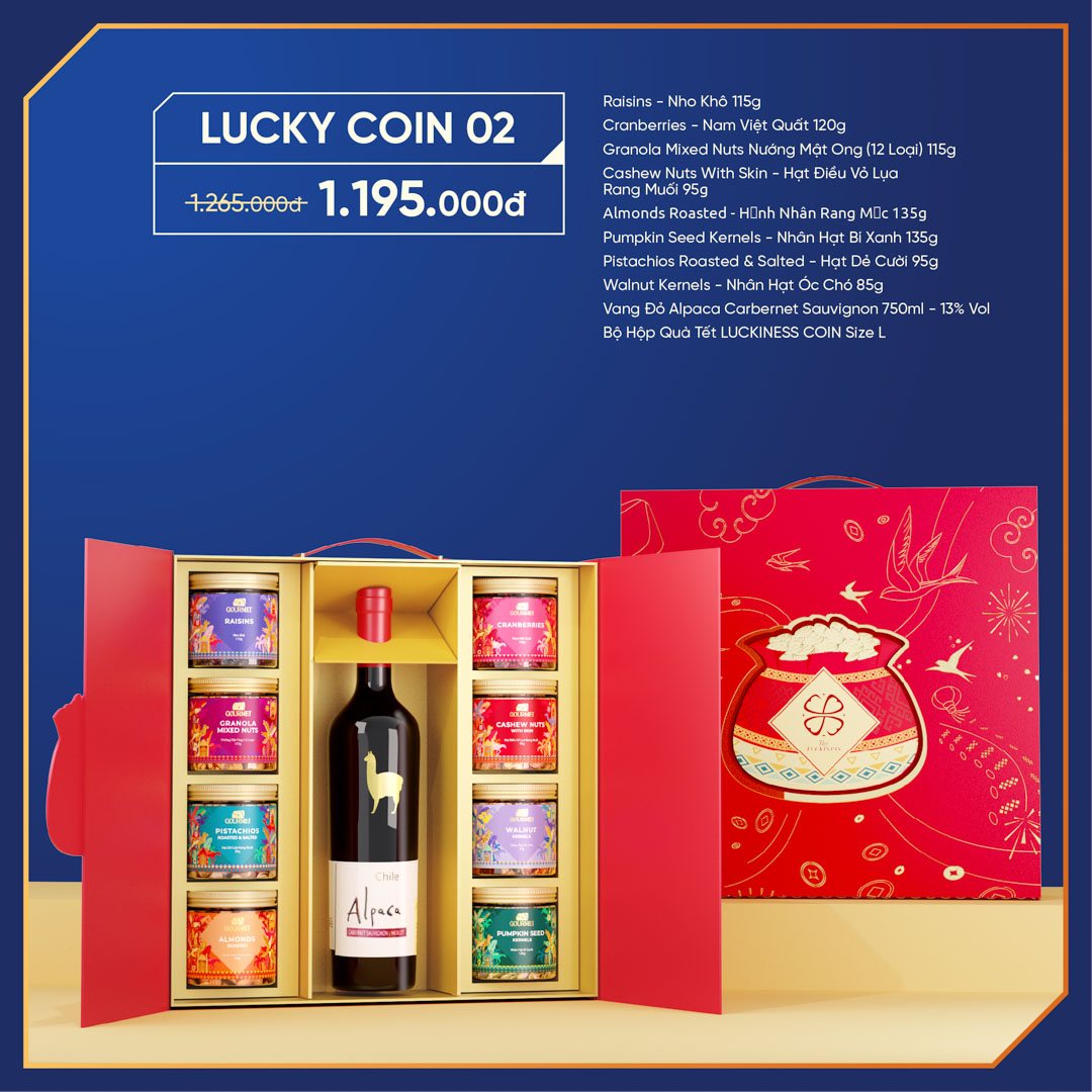 Combo Lucky Coin 02 là sự kết hợp tinh tế giữa dinh dưỡng và mỹ vị, được chọn lọc kỹ lưỡng để gửi trao lời chúc an lành, may mắn và gắn kết. Tham khảo ngay, nếu bạn đang tìm kiếm món quà chất lượng cho dịp lễ Tết sắp đến!