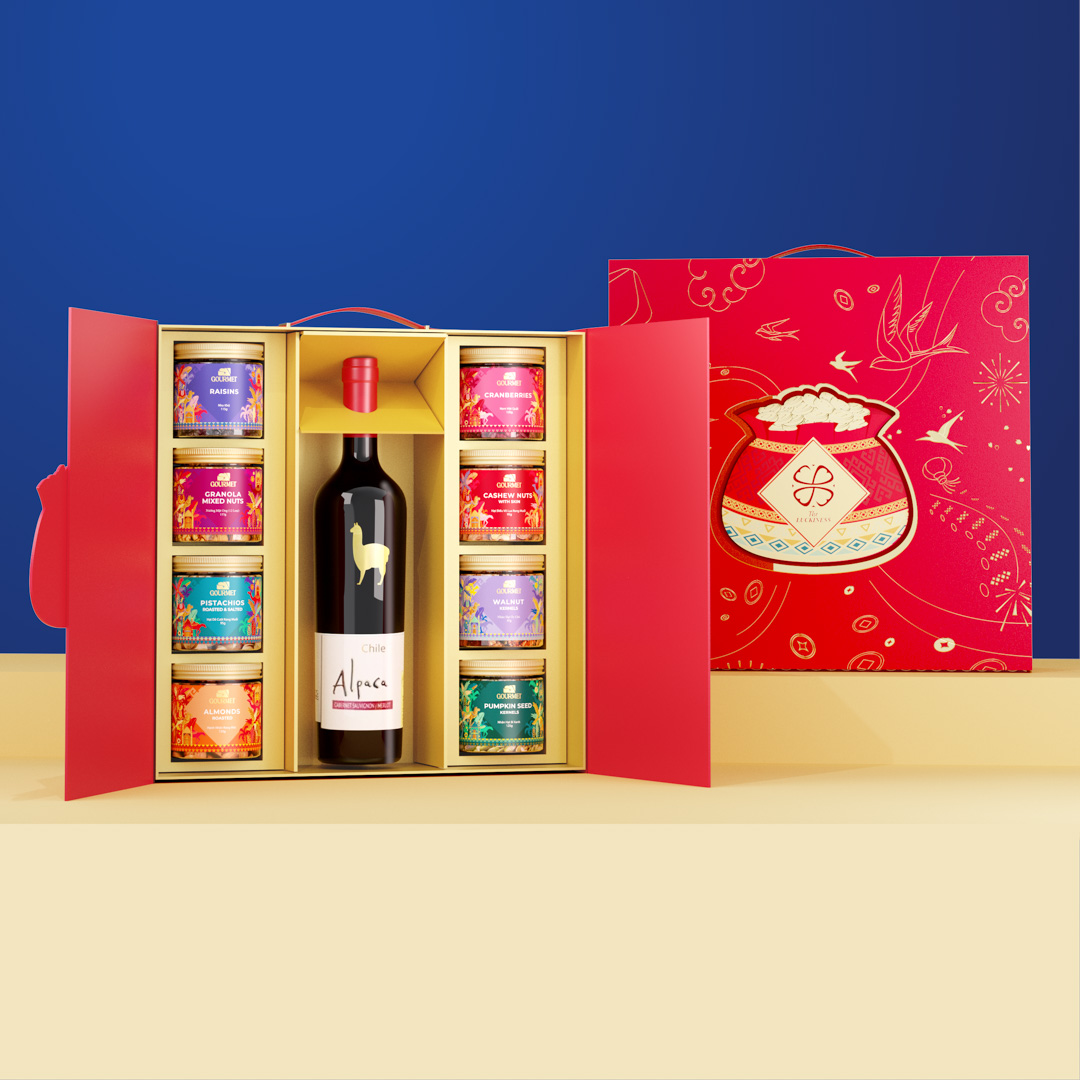 - Rượu Vang Đỏ Alpaca Cabernet Sauvignon 750ml (13% Vol): Vị đậm đà, hậu mềm mượt, đến từ Chile – chai vang tạo điểm nhấn sang trọng, nâng tầm hộp quà Tết, phù hợp để chúc mừng hoặc thưởng thức cùng món ăn ngày xuân.