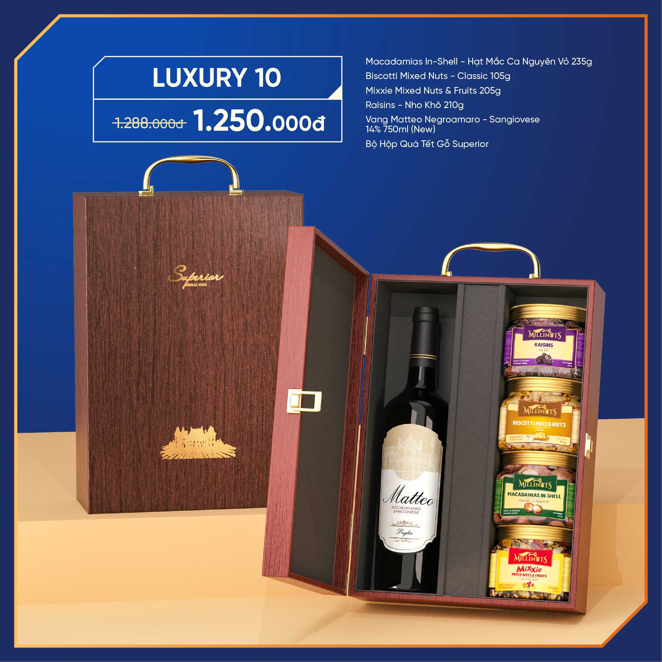 • Bộ Hộp Quà Tết Gỗ Superior