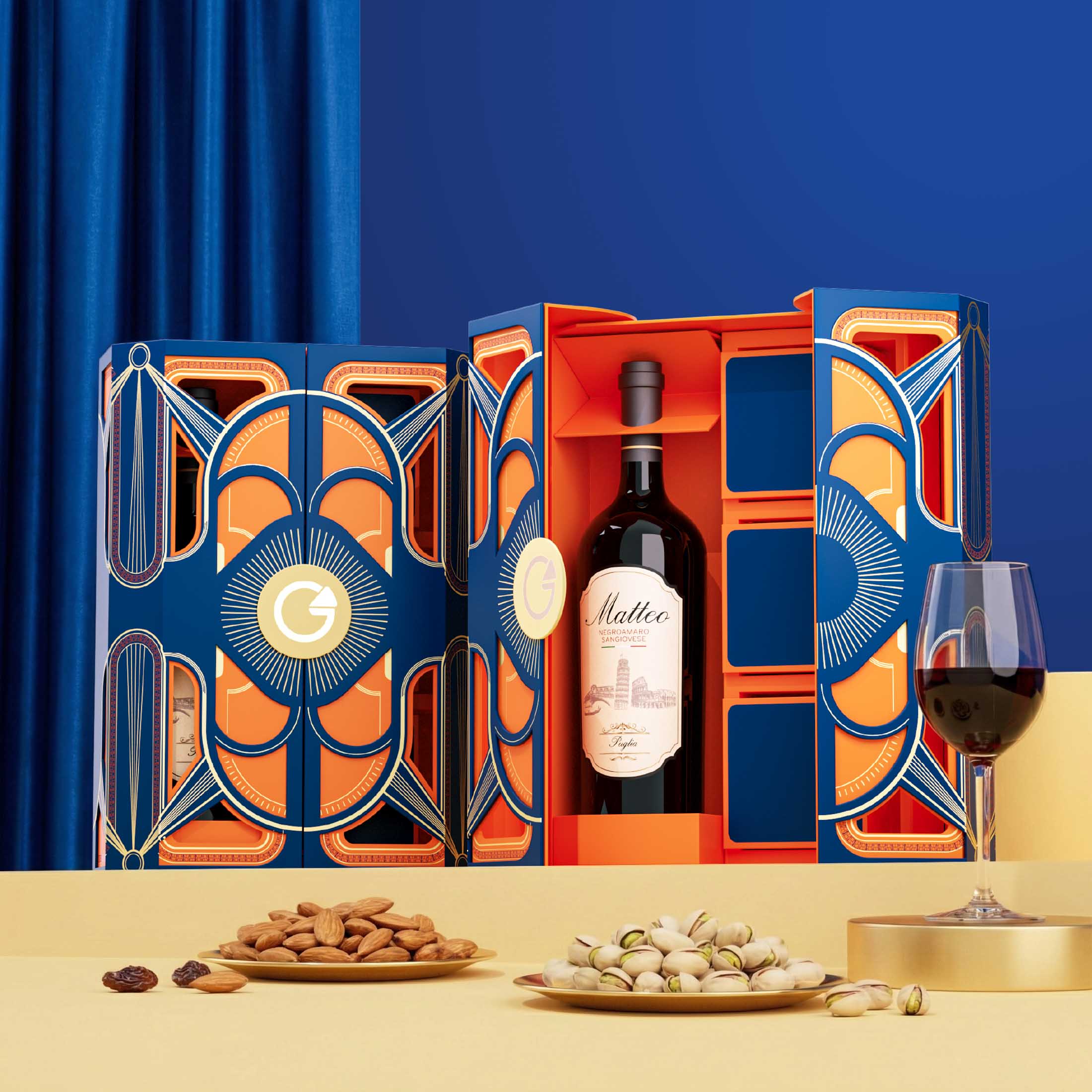 - Rượu Vang Matteo Negroamaro – Sangiovese 14% (750ml): “Linh hồn” của set quà, được phối trộn giữa hai giống nho trứ danh nước Ý tạo nên một chai vang có cấu trúc vững chãi, nồng độ 14% đầm ấm. Vị chát vừa vặn, hương thơm của quả mọng chín sẫm và gia vị, để lại hậu vị sâu lắng, rất hợp để nhâm nhi trong những đêm tiệc thân mật hay những cuộc đối thoại quan trọng đầu năm.